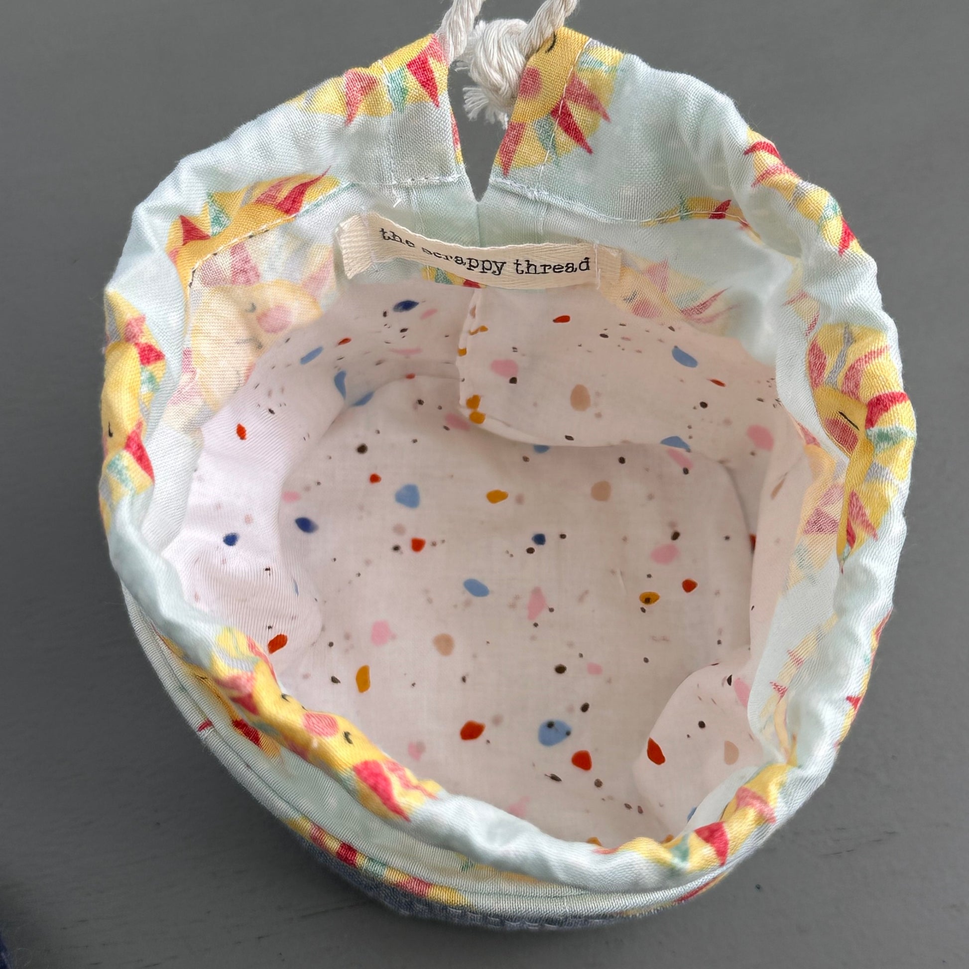 One-of-a-kind Center Pull 'Ball Sack' using high quality quilting cottons, making use of scraps of fabric. Each one is pieced and machine quilted. Each item I make is unique and will never be repeated.