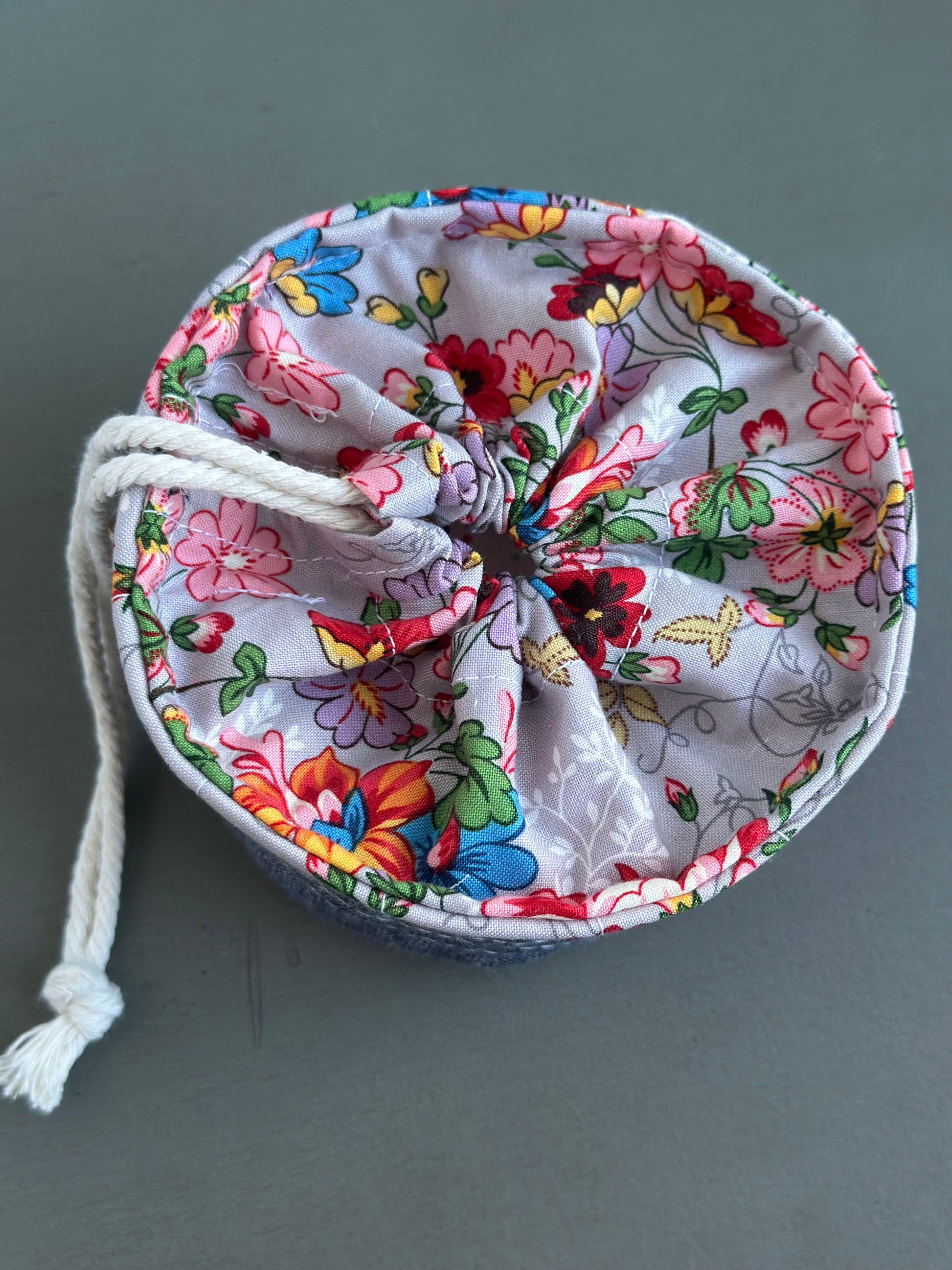'Ball Sack' is fully lined, has drawstring closure leaving an opening for your yarn to pull through while remaining secure.