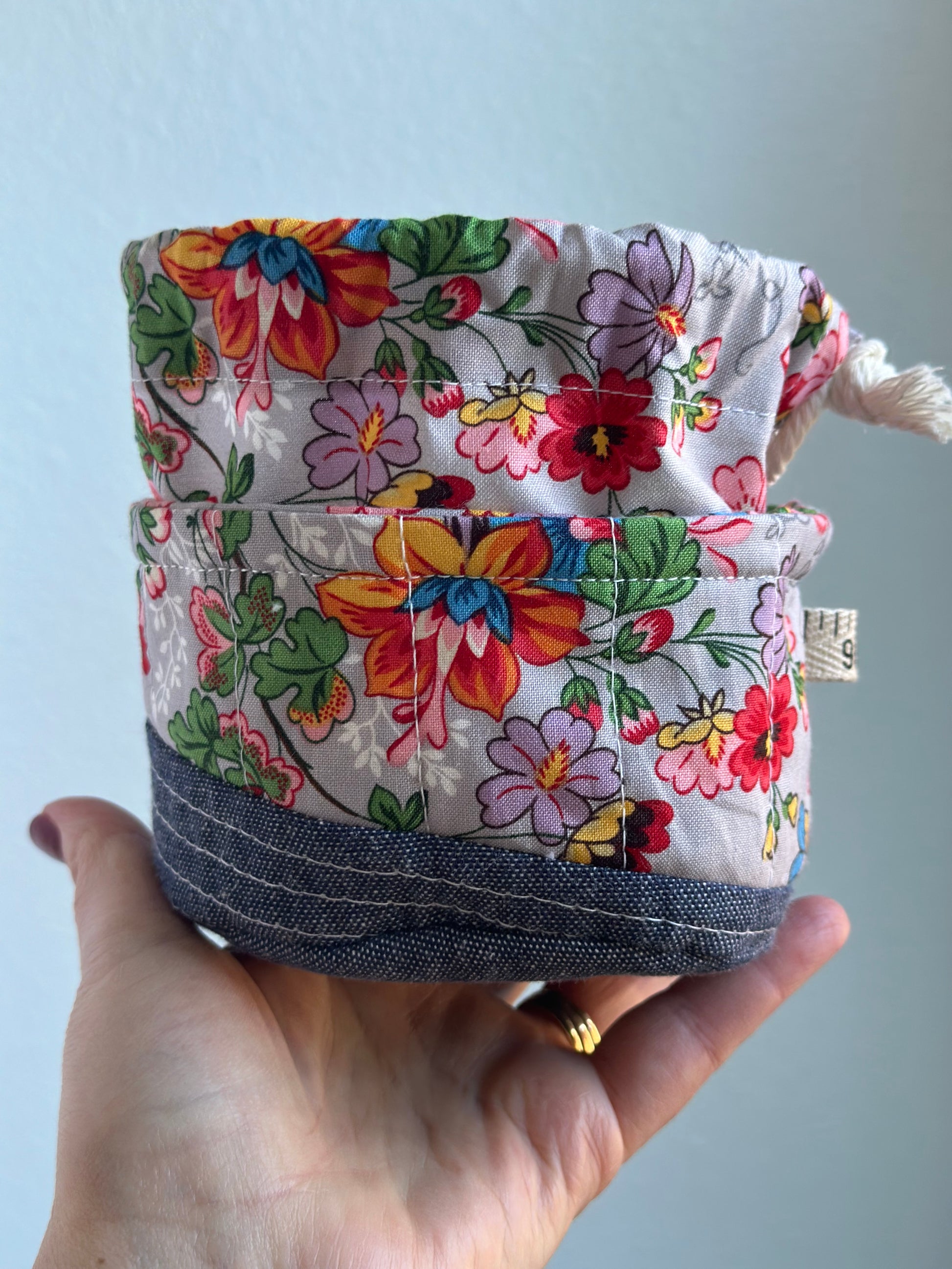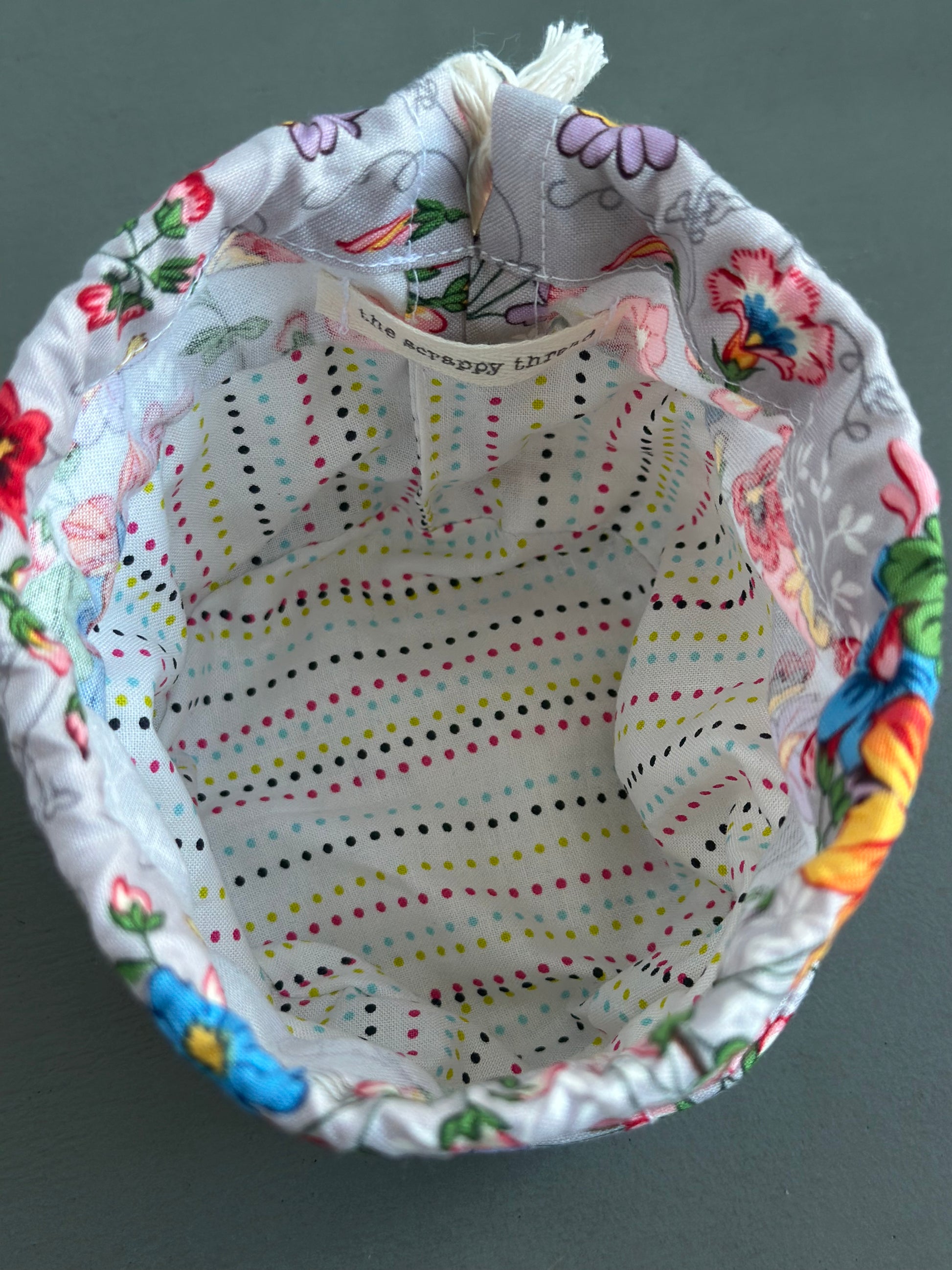 One-of-a-kind Center Pull 'Ball Sack' using high quality quilting cottons, making use of scraps of fabric. Each one is pieced and machine quilted. Each item I make is unique and will never be repeated.