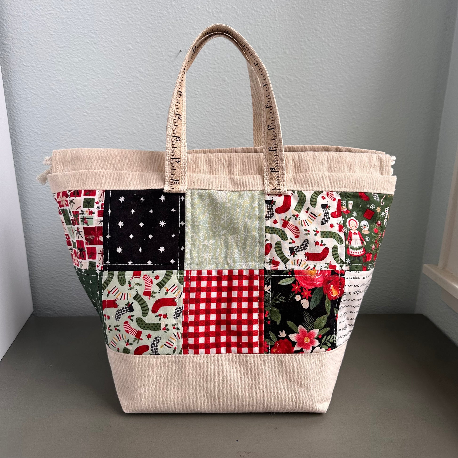 One-of-a-kind project bag using high quality quilting cottons or flannels, and sturdy canvas. Always making use of scraps of fabric. Each bag is pieced and machine quilted. Each bag I make is unique..