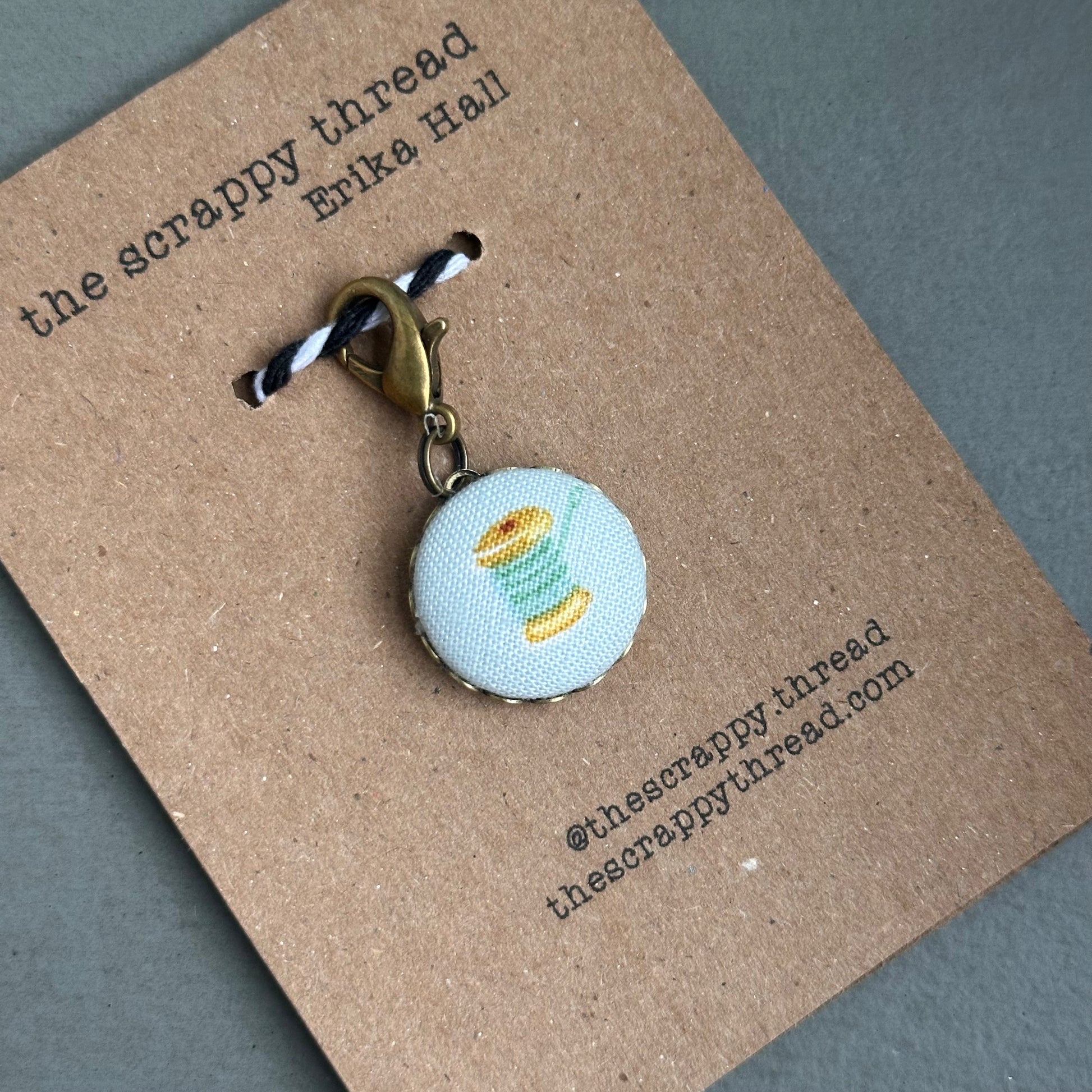 This stitch keeper can be used as a zipper pull, stitch marker, progress keeper or even to add a touch of cute to a planner.